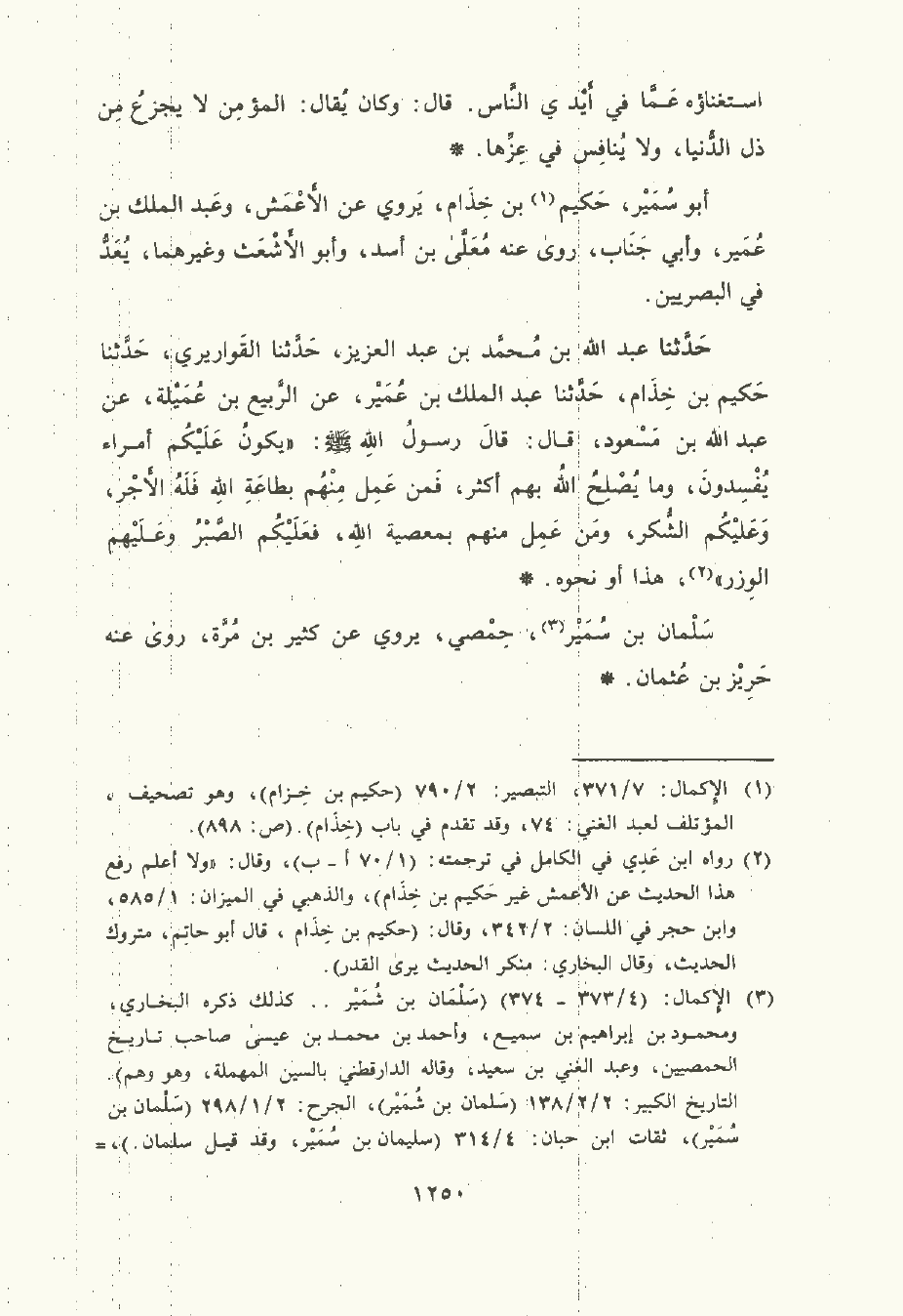 حَدَّثَنا عَبد الله بن مُحَمد بن عبد العزيز , حَدَّثَنا القواريري , حَدَّثَنا حكيم بن خذام , حَدَّثَنا عَبد المَلِك بن عُمَيْر , عن الربيع بن عميلة , عن عَبد الله بن مَسْعود قال: قال رسول الله صلى الله عليه وسلم: "يكون عليكم أمراء يفسدون وما يصلح الله بهم أكثر فمن عمل منهم بطاعة الله فله الأجر وعليكم الشكر ومن عمل منهم بمعصية الله فعليكم الصبر وعليهم الوزر " هذا أو نحوه.