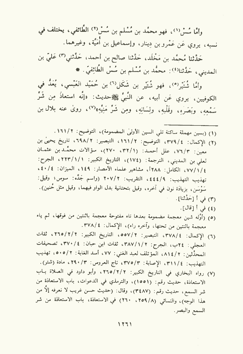 وأمَّا سُس , فهو مُحَمد بن مسلم بن سُس الطَّائِفي يختلف في نسبه , يَرْوي عن عَمْرو بن دِينَار , وإسماعيل بن أُمَيَّة , وغيرهما.