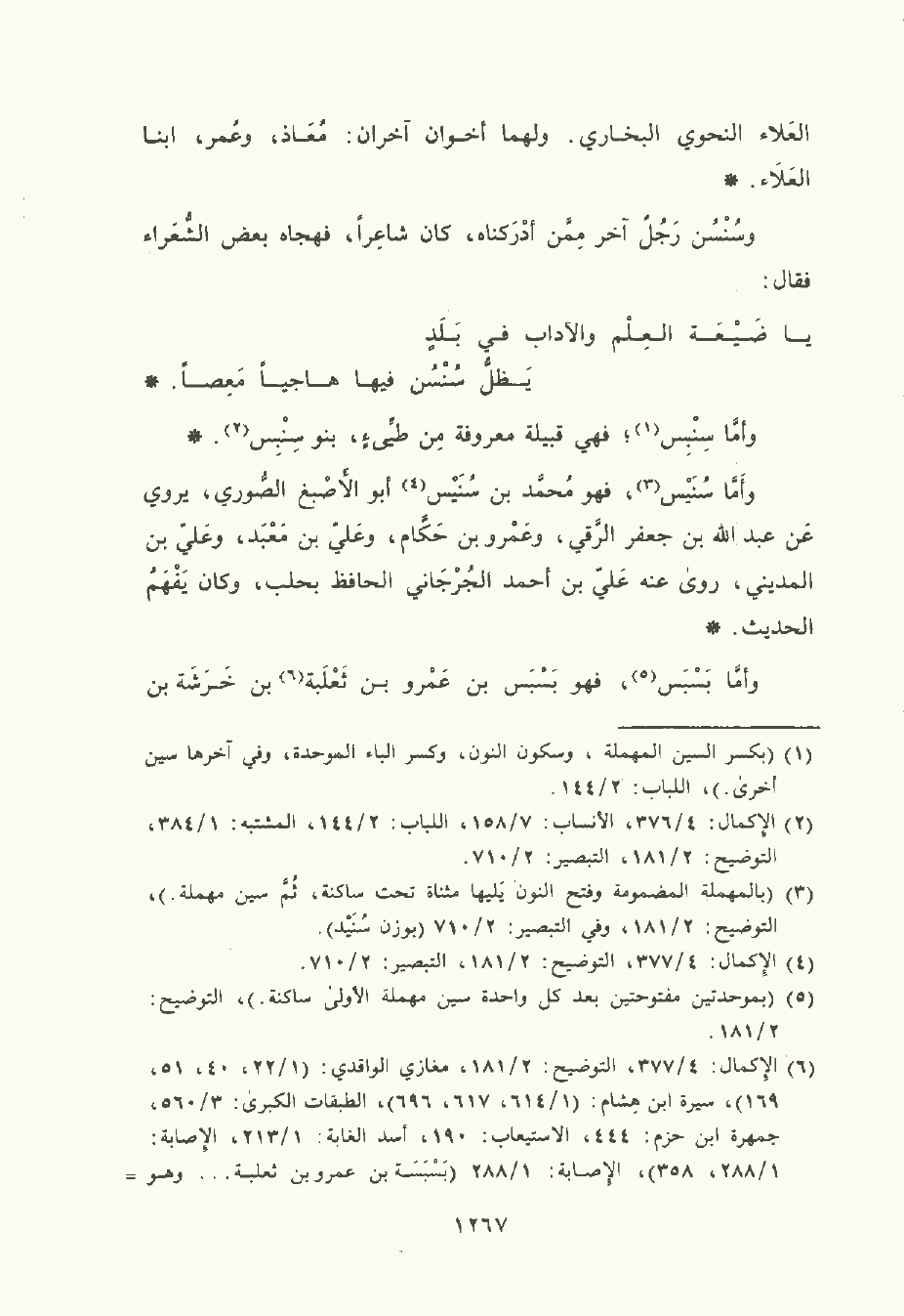 وأمَّا سُنَيْس , فهو مُحَمد بن سُنَيْس أبو الأَصْبغ الصوري , يَرْوي عن عَبد الله بن جَعْفر الرقي , وعَمْرو بن حكام , وعلي بن معبد وعَلِيّ بن المَدِينيّ , رَوَى عَنْه علي بن أحمد الجرجاني الحافظ بحلب , وكان يفهم الحديث.