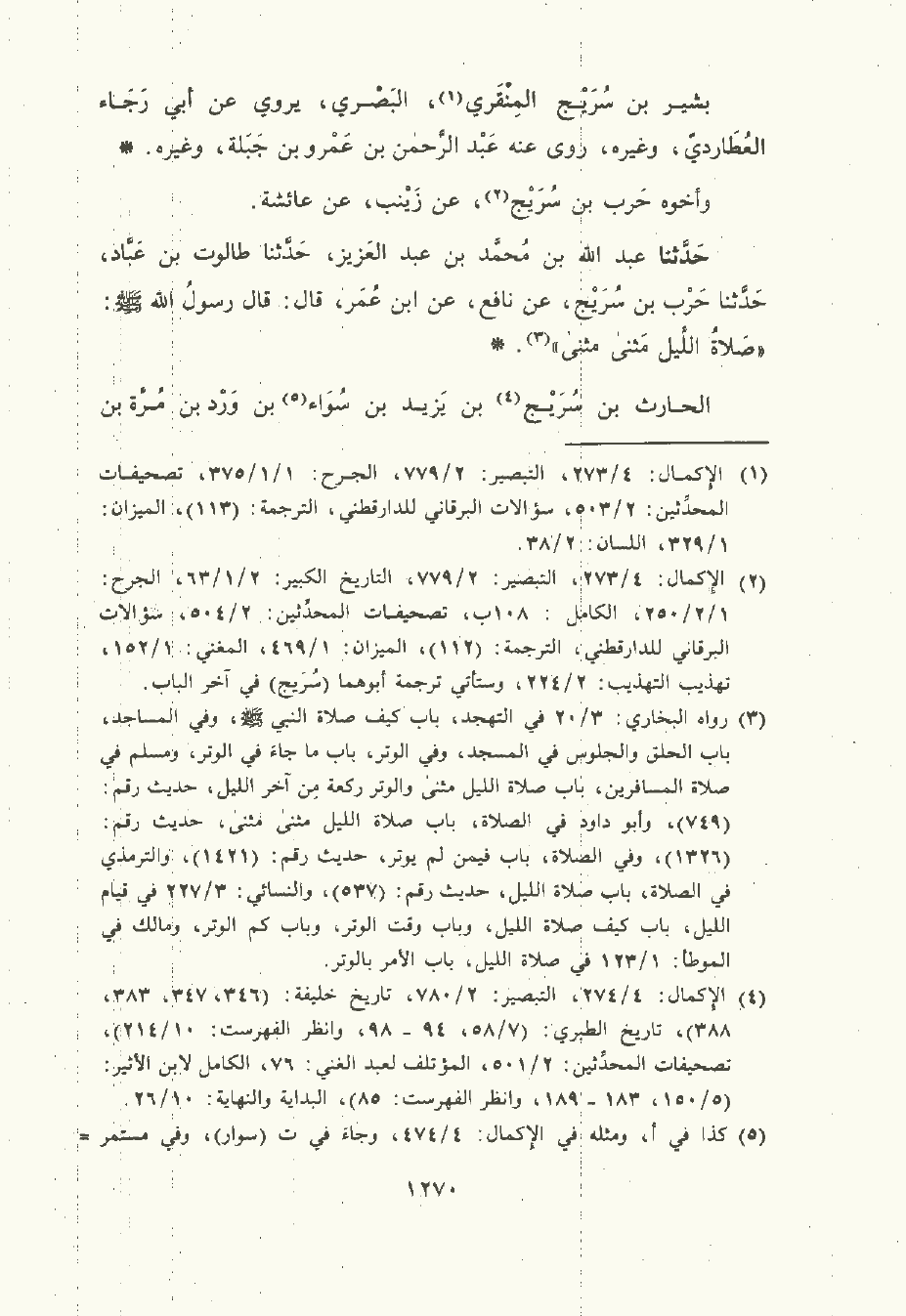 حَدَّثَنا عَبد الله بن مُحَمد بن عبد العزيز , حَدَّثَنا طالوت بن عَبَّاد , حَدَّثَنا حرب بن سُرَيْح , عن نَافِع , عن ابن عُمَر قال: قال رسول الله صلى الله عليه وسلم: "صلاة الليل مثنى مثنى".