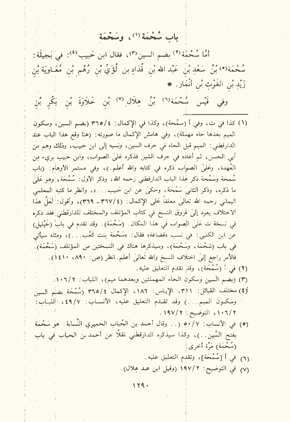 أمّا سُحْمَة , بضم السين , فقال ابن حبيب في بَجِيلَة: سُحْمَة بن سَعْد بن عَبد الله بن قداد بن لُؤَيّ بن رهم بن مُعَاوية بن زيد بن الغوث بن أنمار.