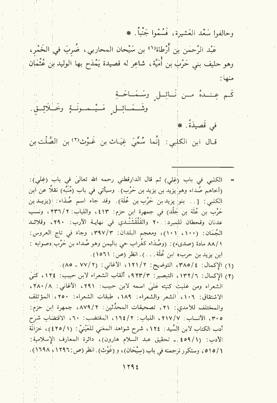 عَبْد الرَّحْمن بن أرطاة بن سَيْحَان المحاربي , ضرب في الخمر , وهو حليف بني حرب بن أُمَيَّة شاعر له قصيدة يمدح بها الوليد بن عُثْمان منها: