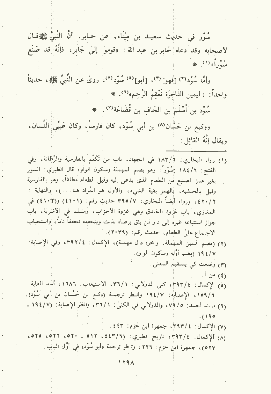 وأمَّا سُود , فهو أبو سُود , رَوَى عن النَّبِيِّ صلى الله عليه وسلم حديثا واحدا: "اليمين الفاجرة تعقيم الرحم".