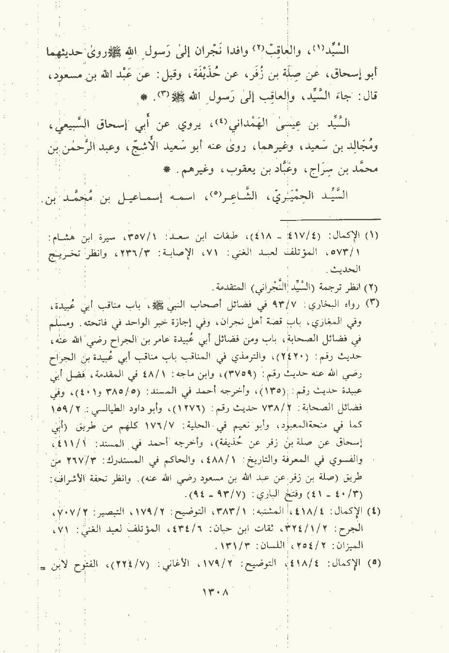 السَّيِّد والعاقب , وافدا نجران إلى رسول الله صلى الله عليه وسلم , روى حديثهما أبو إِسْحَاق , عن صلة بن زفر , عن حُذَيْفَة وقيل: عن عَبد الله بن مَسْعود قال: جاء السَّيِّد والعاقب إلى رسول الله صلى الله عليه وسلم.