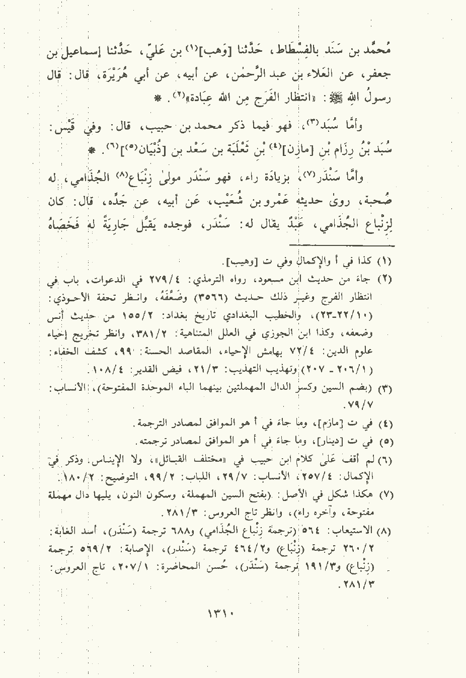 وأمَّا سَنْدَر , بزيادة راء , فهو سَنْدَر مولى زنباع الجذامي , له صُحْبة روى حديثه عَمْرو بن شُعَيْب , عن أبيه , عن جده قال: كان لزنباع الجذامي عبد يقال له: سندر فوجده يقبل جارية له فخصاه وجدعه