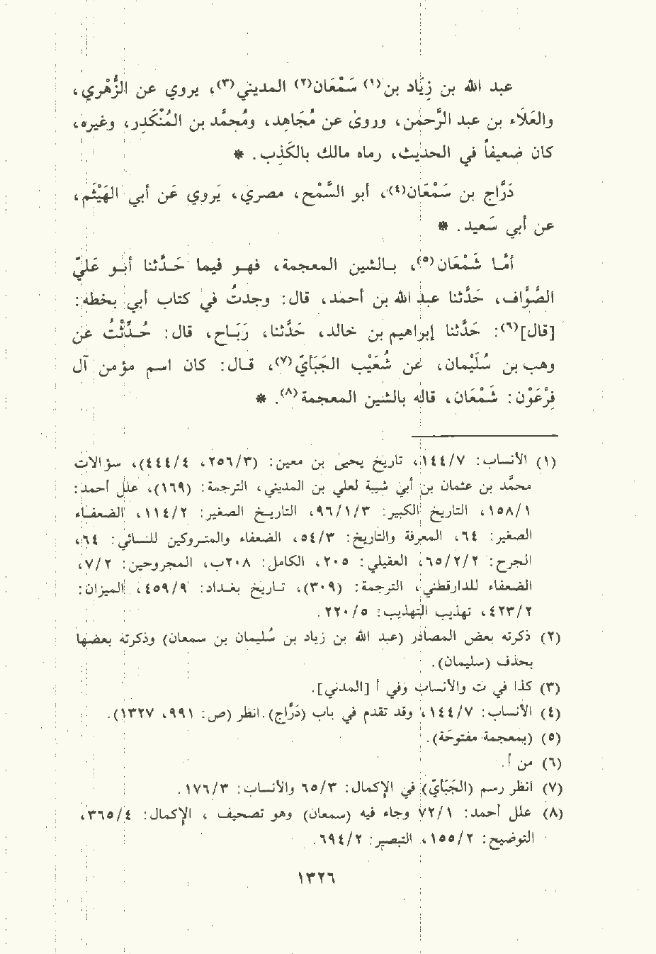 عَبد الله بن زياد بن سمعان المديني , يَرْوي عن الزُّهْريّ والعلاء بن عَبْد الرَّحْمن , ورَوَى عن مُجَاهد , ومُحمَّد بن المُنْكَدر , وغيره , كان ضعيفا في الحديث , رماه مَالِك , بالكذب.