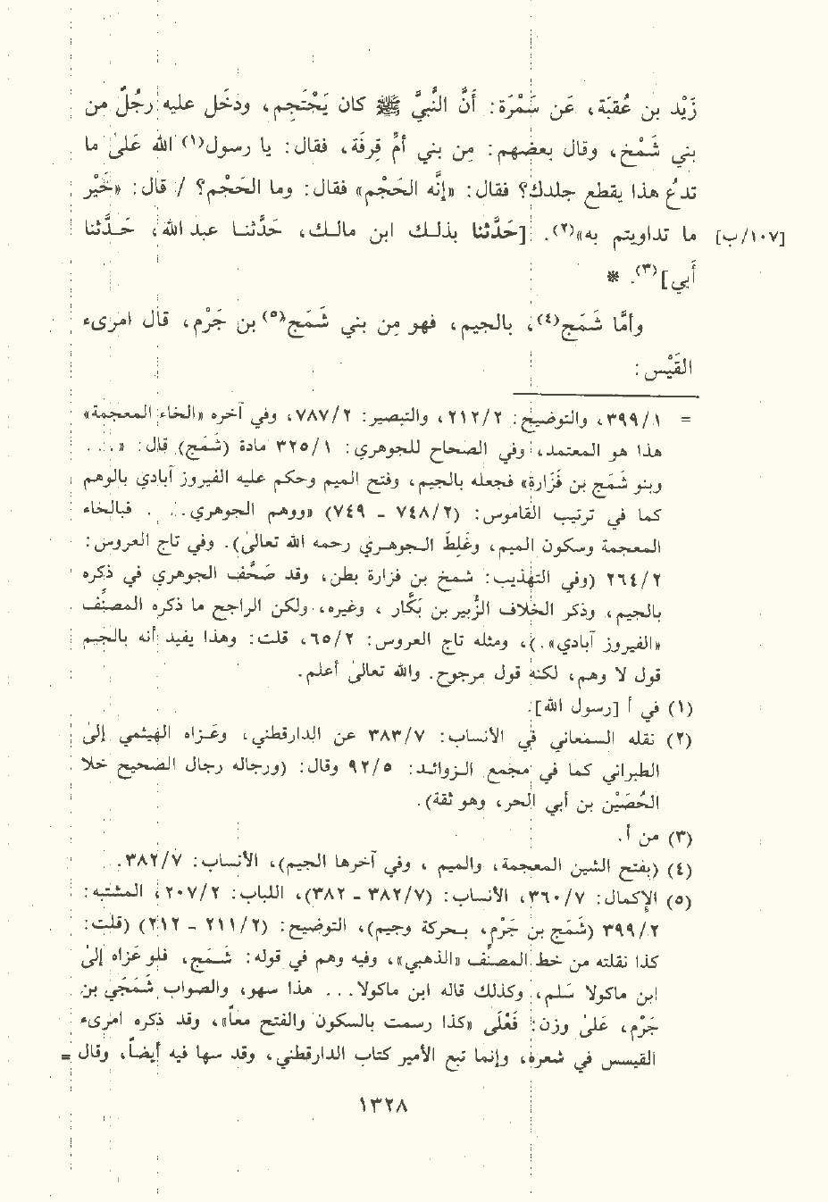 عن سمرة: أنّ النَّبِيّ صلى الله عليه وسلم , كان يحتجم ودخل عليه رجل من بني شمخ وقال بعضهم: من بني أم قِرْفة فقال: يا رسول الله على ما تدع هذا يقطع جلدك؟ فقال: "إنه الحجم " فقال: وما الحجم؟ قال: "خير ما تداويتم به " حَدَّثَنا بذلك ابن مَالِك , حَدَّثَنا عَبد الله , حَدَّثَنا أبي.