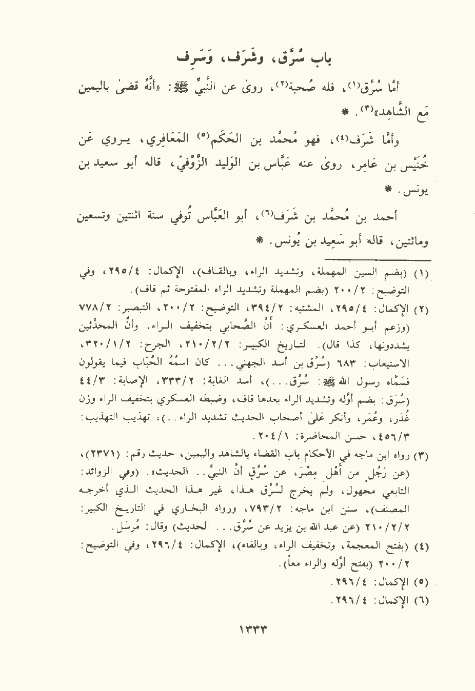 أمّا سُرَّق فله صُحْبة , رَوَى عن النَّبِيِّ صلى الله عليه وسلم: "أنه قضى , باليمين مع الشاهد".