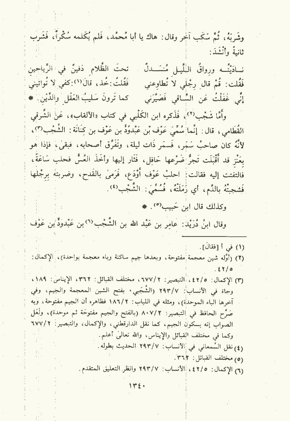 وأمَّا شَجْب , فذكره ابن الكَلْبيّ في كتاب الألقاب , عن الشرقي القطامي قال: إنَّما سُمِّي عَوْف بن عبدود بن عَوْف بن كِنَانَة: الشجب لأنه كان صاحب سمر فسمر ذات ليلة وتفرق أصحابه فبقى فإذا هو بعنز قد أقبلت تجر ضرعها حافل فثار إليها وأخذ العس فحلب ساعة فالتفتت إليه فقالت: احلب عَوْف أودع فرمى , بالقدح وضربته برجلها فشجبته , بالدم أي رملته فسمي: الشجب.