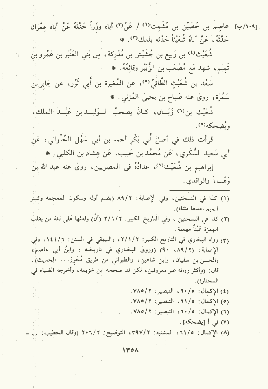 قرأت ذلك في أصل أبي بكر أحمد بن أبي سَهْل الحُلْوَانيّ , عن أبي سَعِيد السُّكريّ , عن مُحمَّد بن حبيب , عن هشام بن الكَلْبيّ.