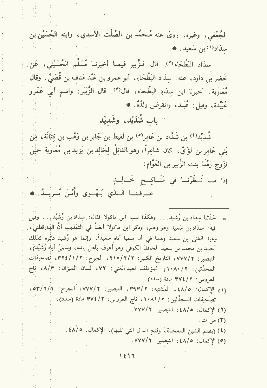 سِدَاد البطحاء. قال الزُّبَيْر فيما أخبرنا مُسَلَّم الحُسَيْني , عن خضر بن داود عنه: سداد البطحاء أبو عَمْرو بن عبد مناف بن قصي. وقال مُعَاوية: أخبرنا ابن سداد البطحاء قال قال الزُّبَيْر: واسم أبي عَمْرو عبيدة وقيل: عبيد وانقرض ولده.
