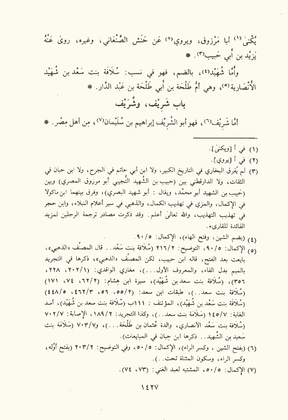 أمّا شَرِيف , فهو أبو الشَّرِيف إبراهيم بن سُلَيْمان , مِنْ أَهْلِ مِصْرَ.