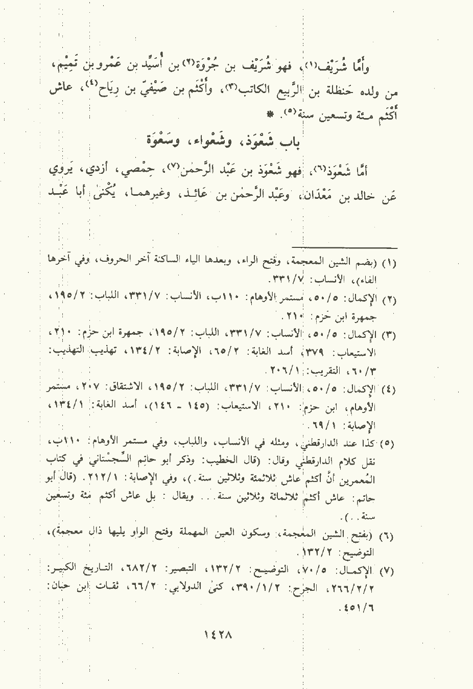 وأمَّا شُرَيْف , فهو شُرَيْف بن جروة بن أًسَيِّد بن عَمْرو بن تَمِيم , من ولده حَنْظَلة بن الربيع الكاتب , وأكثم بن صيفي بن رياح , عاش أكثم مئة وتسعين سنة.