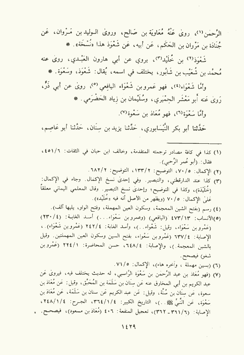 يُكْنَى أبا عَبْد الرَّحْمن , رَوَى عَنْه مُعَاوية بن صَالِح , وروى الوليد بن مروان , عن جنادة بن مروان بن الحكم , عن أبيه , عن شَعْوَذ هذا نسخة.