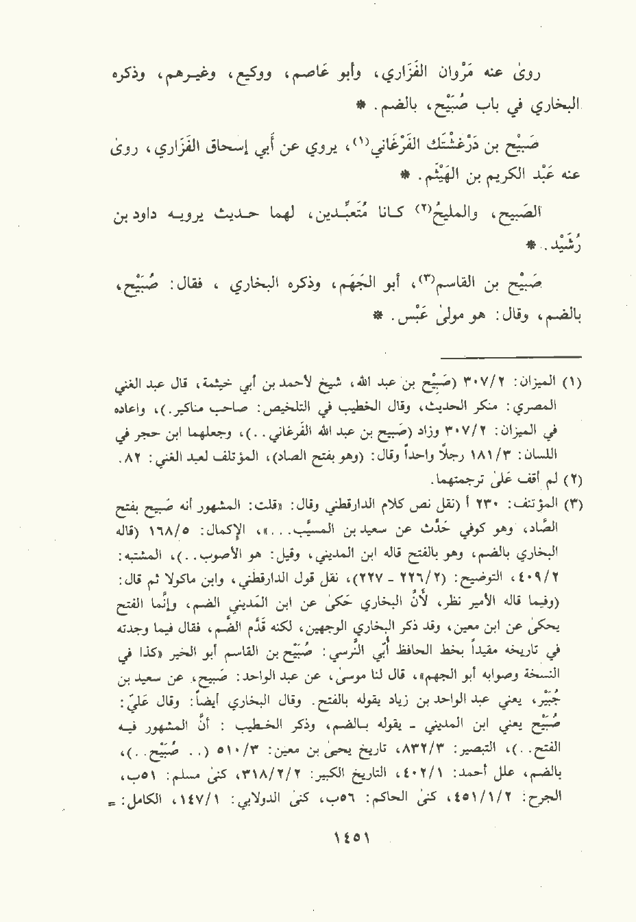 رَوَى عَنْه مروان الفَزَارِيّ , وأبو عَاصِم , ووَكِيع , وغيرهم , وذكره البُخَاريّ في باب صُبَيْح , بالضم.