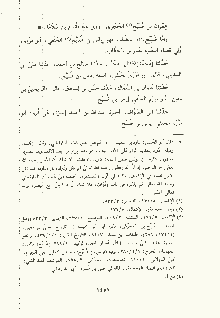 وأمَّا ضُبَيْح , بالضاد , فهو إياس بن ضُبَيْح الحَنَفِي أبو مَرْيم , ولي قضاء لعُمَر بن الخطاب.