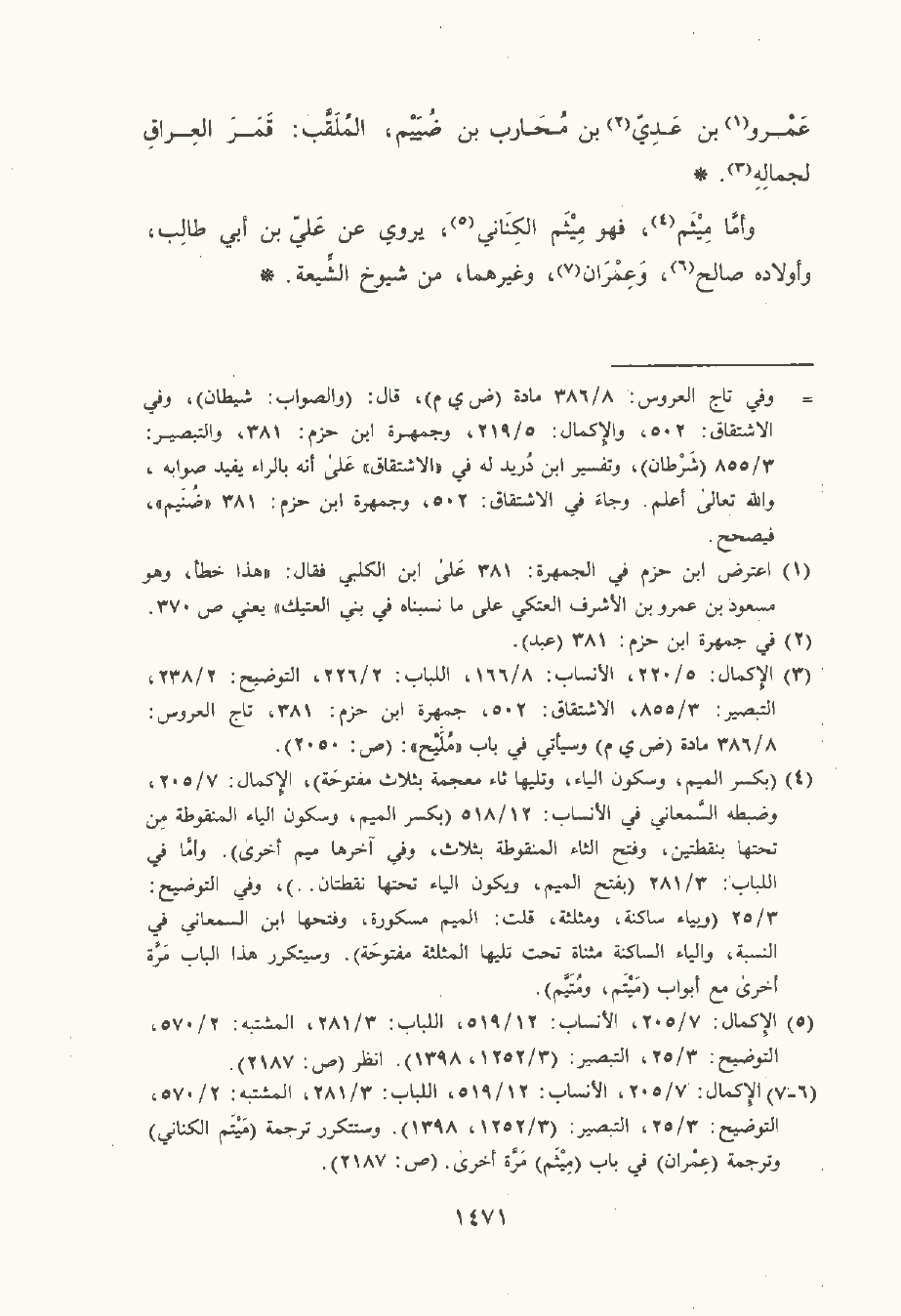 وأمَّا مِيْثَم , فهو مِيْثَم الكِنَانِي , يَرْوي عن عَلِيّ بن أبي طالب , وأولاده صَالِح , وعمران , وغيرهما من شيوخ الشِّيعَة.