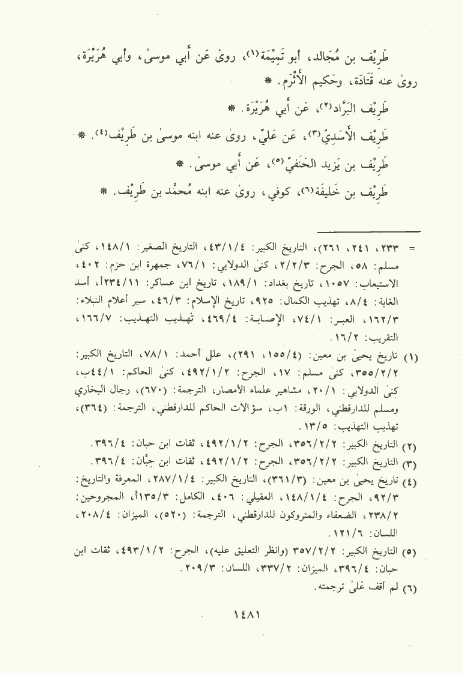 طَرِيف بن مُجَالِد أبو تميمة , رَوَى عن أبي موسى , وأبي هُرَيْرة , رَوَى عَنْه قَتَادَة وحكيم الأَثْرَم.