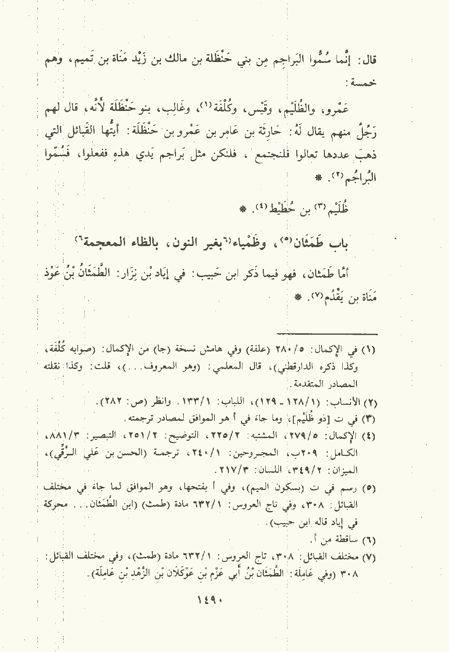 قال: إنما سموا البراجم , من بني حَنْظَلة بن مَالِك بن زيد مناة بن تميم وهم خمسة: