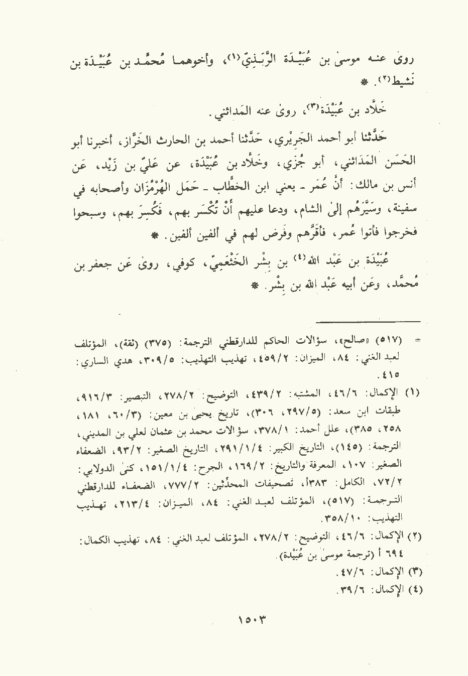 حَدَّثَنا أبو أحمد الجريري , حَدَّثَنا أحمد بن الحَارِث الخراز , أخبرنا أبو الحَسَن المدائني أبو جزى وخلاد بن عبيدة , عن عَلِيّ بن زيد , عن أنس بن مَالِك: أن عمر – يعني ابن الخطاب – حمل الهرمزان وأصحابه في سفينة , وسيرهم إلى الشَّام , ودعا عليهم أن تكسر بهم , فكسر بهم , وسبحوا فخرجوا فأتوا عمر فأقرهم وفرض لهم في ألفين ألفين.