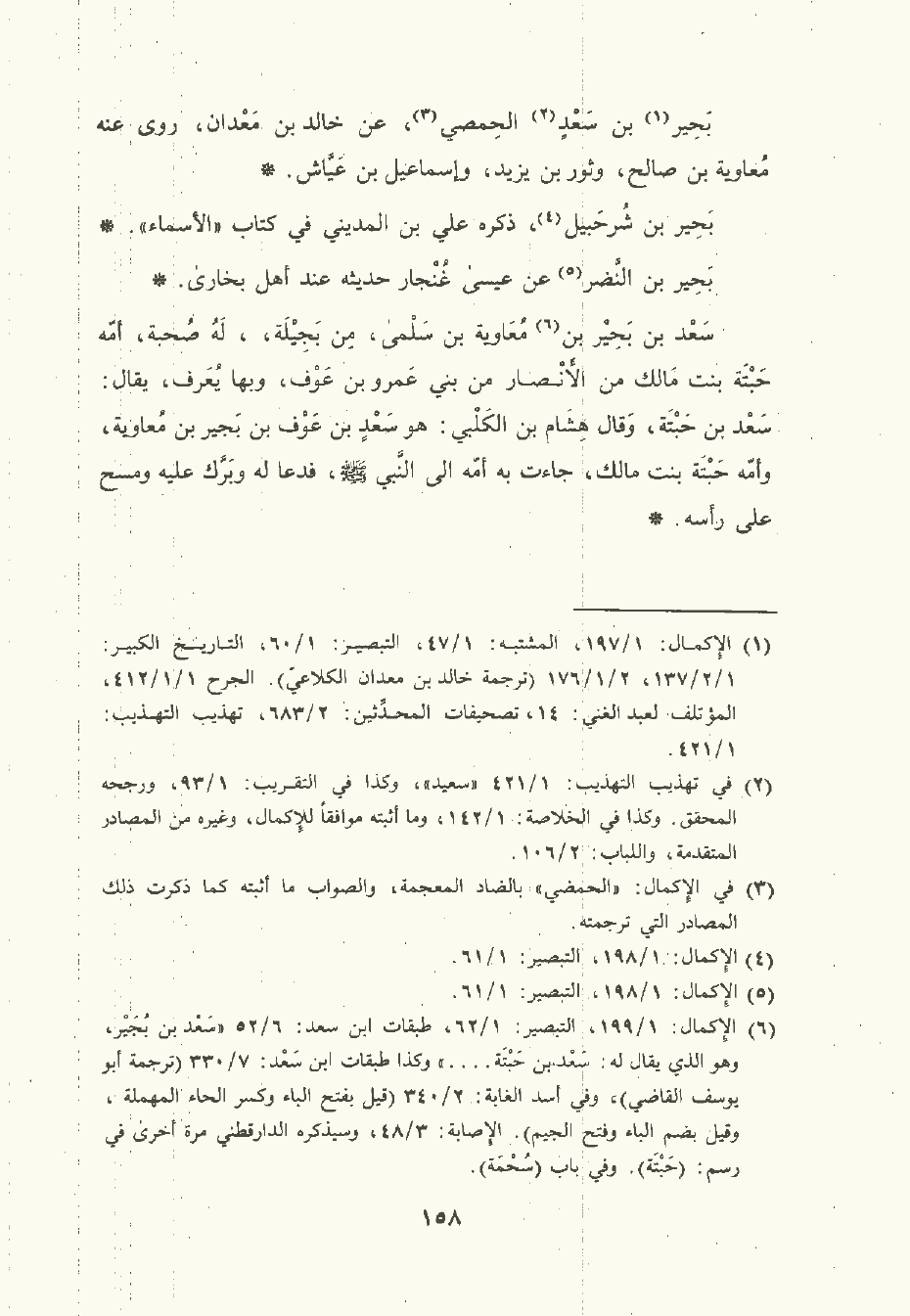 بَحِير بن سَعْد الحمصي , عن خالد بن مَعْدَان، رَوَى عنه مُعَاوية بن صالح وثور بن يَزِيد وإسماعيل بن عَيَّاش.
