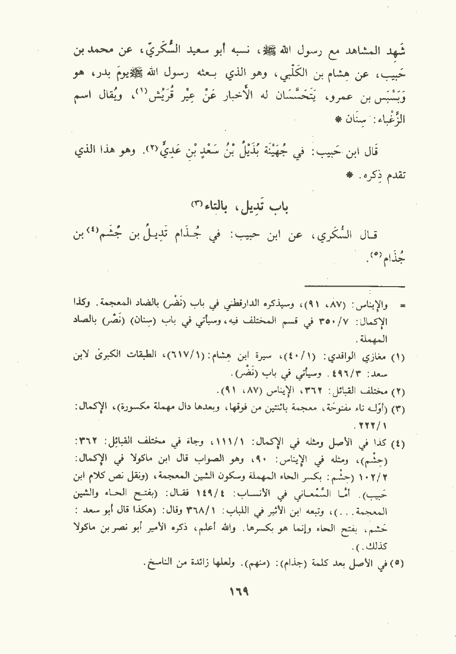 قال ابْنُ حَبِيب: في جُهَيْنة بُذَيْل بن سَعْد بن عَدِيّ وهو هذا الَّذي تقدم ذكره.