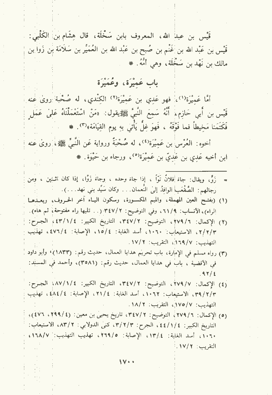 أمّا عَمِيرَة , فهو عدي بن عَمِيرَة الكِنْدي , له صُحْبة , رَوَى عَنْه قَيْس بن أبي حَازِم أنه سَمِعَ النَّبِيّ صلى الله عليه وسلم يقول: "من استعملناه على عمل فكتمنا مخيطا فما فوقه , فهو غل يأتي به يوم القيامة".