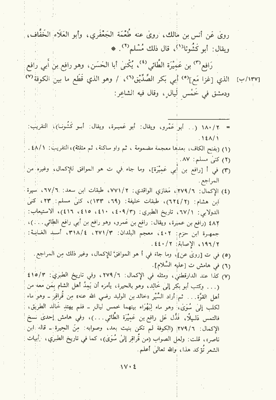 رَوَى عن أنس بن مَالِك , رَوَى عَنْه طعمة الجَعْفَرِيّ , وأبو العلاء الخفاف , ويقال: أبو كشوثا , قال ذلك مسلم.