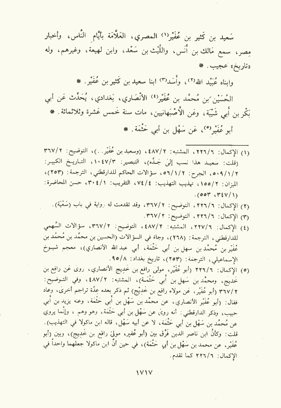 سَعِيد بن كثير بن عُفَيْر المِصْرِيّ العلامة بأيام النَّاس وأخبار مصر , سَمِعَ مَالِك بن أنس , واللَّيْث بن سَعْد , وابن لَهِيعَة , وغيرهم وله تاريخ عجيب.