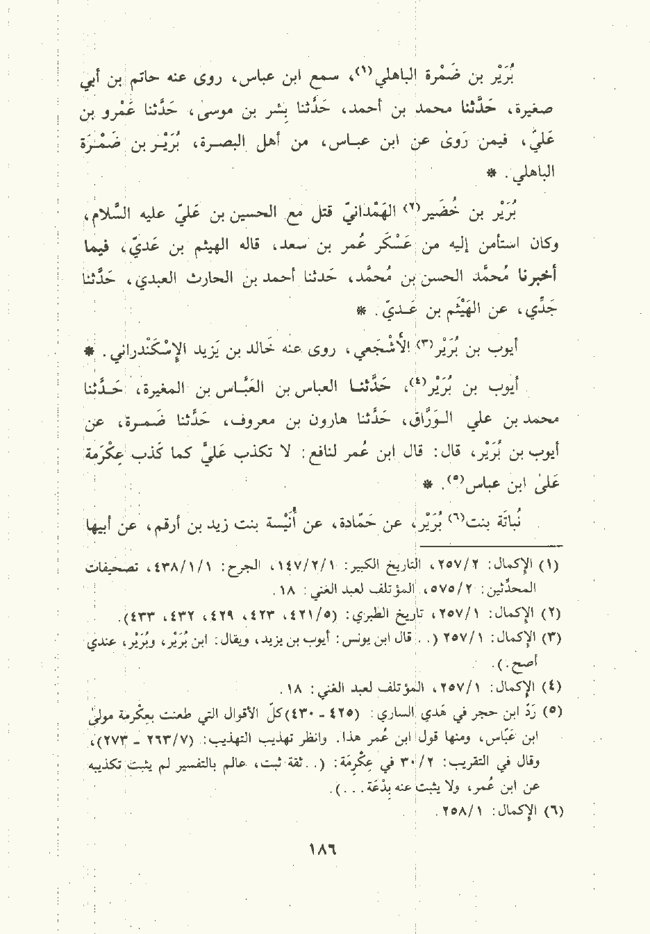 بُرَيْر بن ضَمْرة البَاهِليّ سمع ابن عَبَّاس، رَوَى عنه حاتم بن أبي صغيرة , حَدَّثَنا مُحمَّد بن أحمد , حَدَّثَنا بشر بن موسى , حَدَّثَنا عَمْرو بن علي فيمن رَوَى عن ابن عَبَّاس من أهل البصرة بُرَيْر بن ضَمْرة البَاهِليّ.