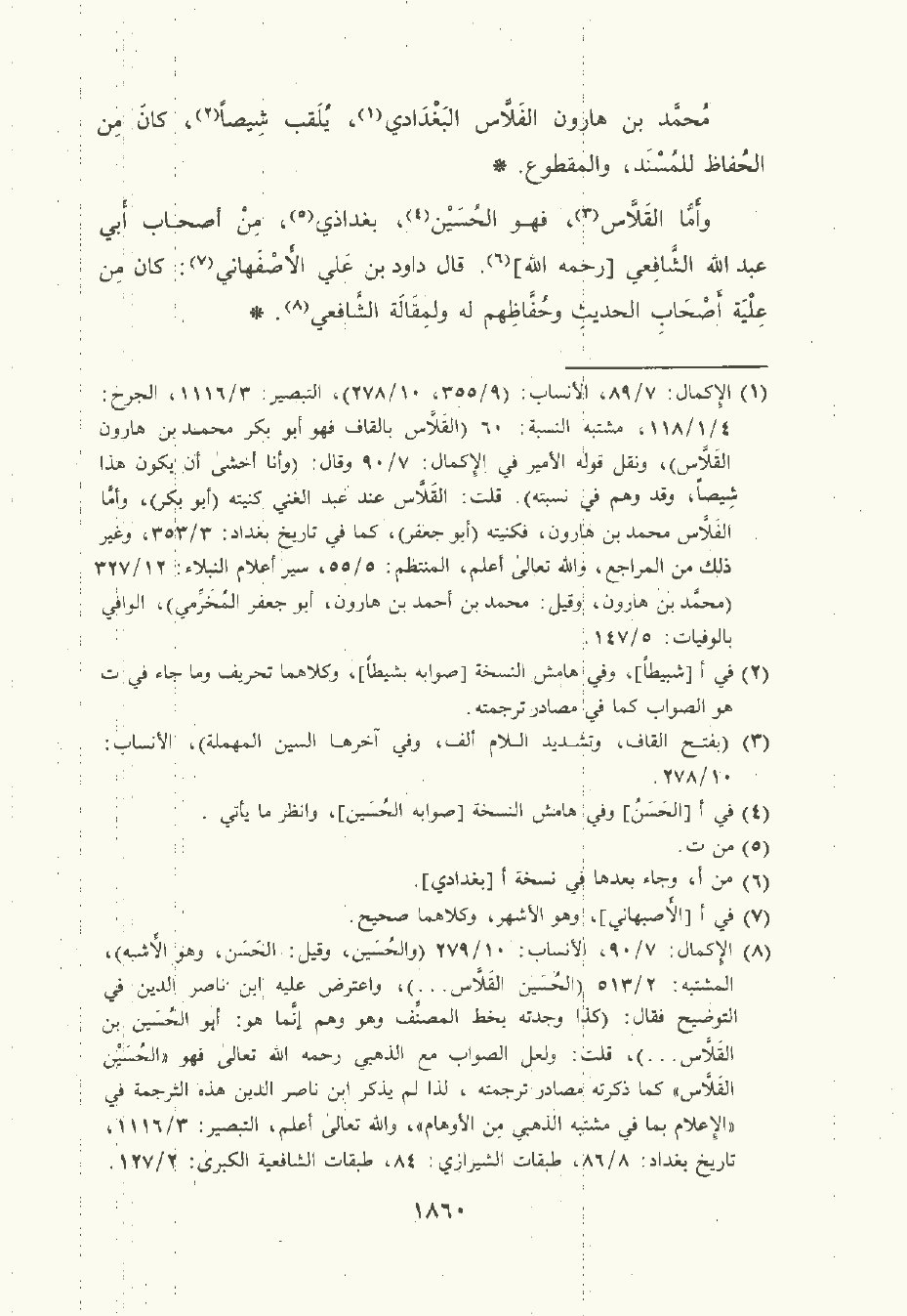 وأمَّا القَلاَّس , فهو الحُسَين بغدادي من أصحاب أبي عَبد الله الشَّافِعي رحمه الله. قال داود بن عَليّ الأصفاهني: كان من علية أصحاب الحديث وحفاظهم , له ولمقالة الشَّافِعي.