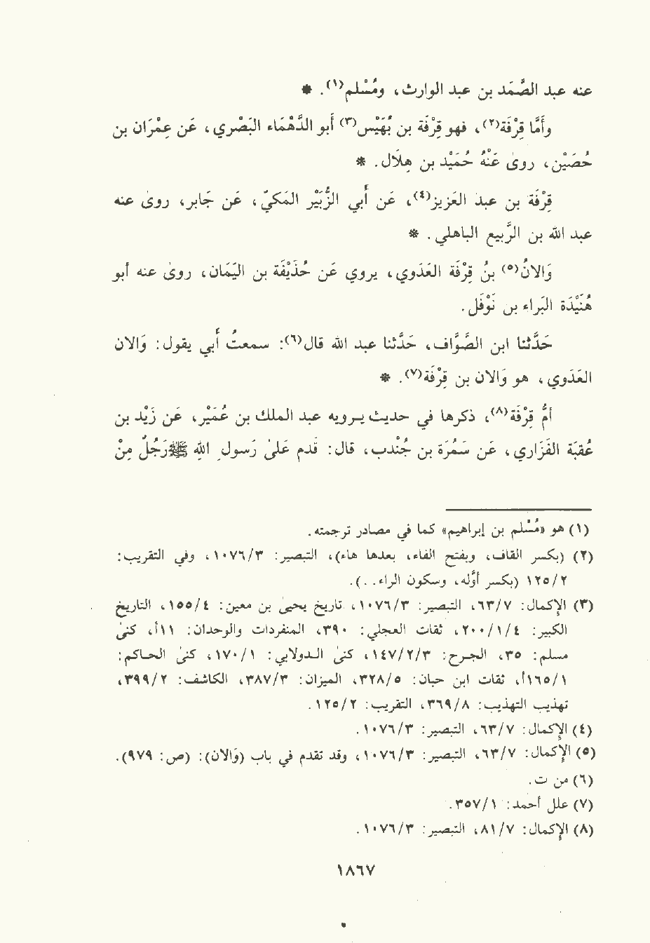 حَدَّثَنا ابن الصَّوَّاف , حَدَّثَنا عَبد الله , قال: سَمِعتُ أبي يقول: والان العَدَوِيّ هو , والان بن قِرْفَة.