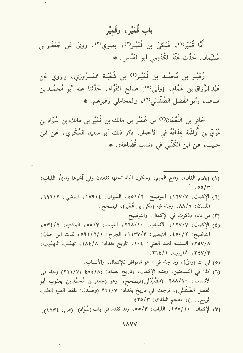 أمّا قُمَيْر , فمكي بن قُمَيْر بَصْريّ , رَوَى عن جَعْفر بن سُلَيْمان , حَدَّث عنه الكُدَيْمِي أبو العَبَّاس.