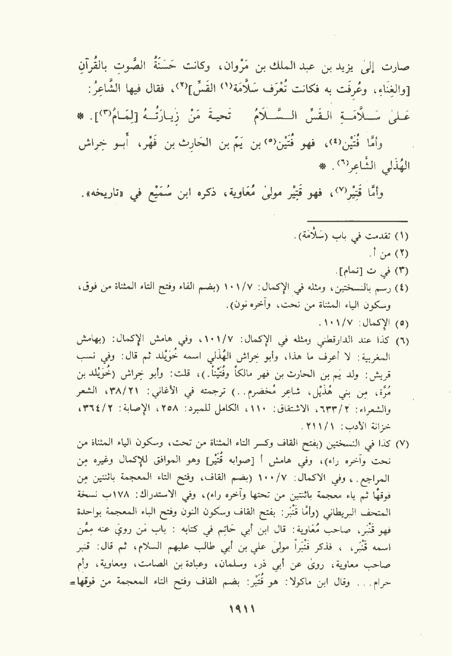 وأمَّا فُتَيْن , فهو فتين بن يم بن الحَارِث بن فهر أبو خراش الهذلي الشَّاعِر.