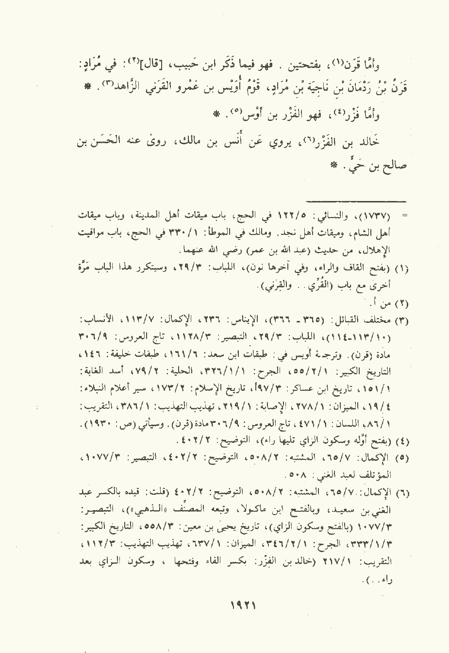 وأمَّا قَرَن , بفتحتين , فهو فيما ذكر ابن حَبِيب , قال: في مراد: قَرَن بن ردمان بن ناجية بن مراد , قوم أُوَيْس بن عَمْرو القَرَني الزاهد.