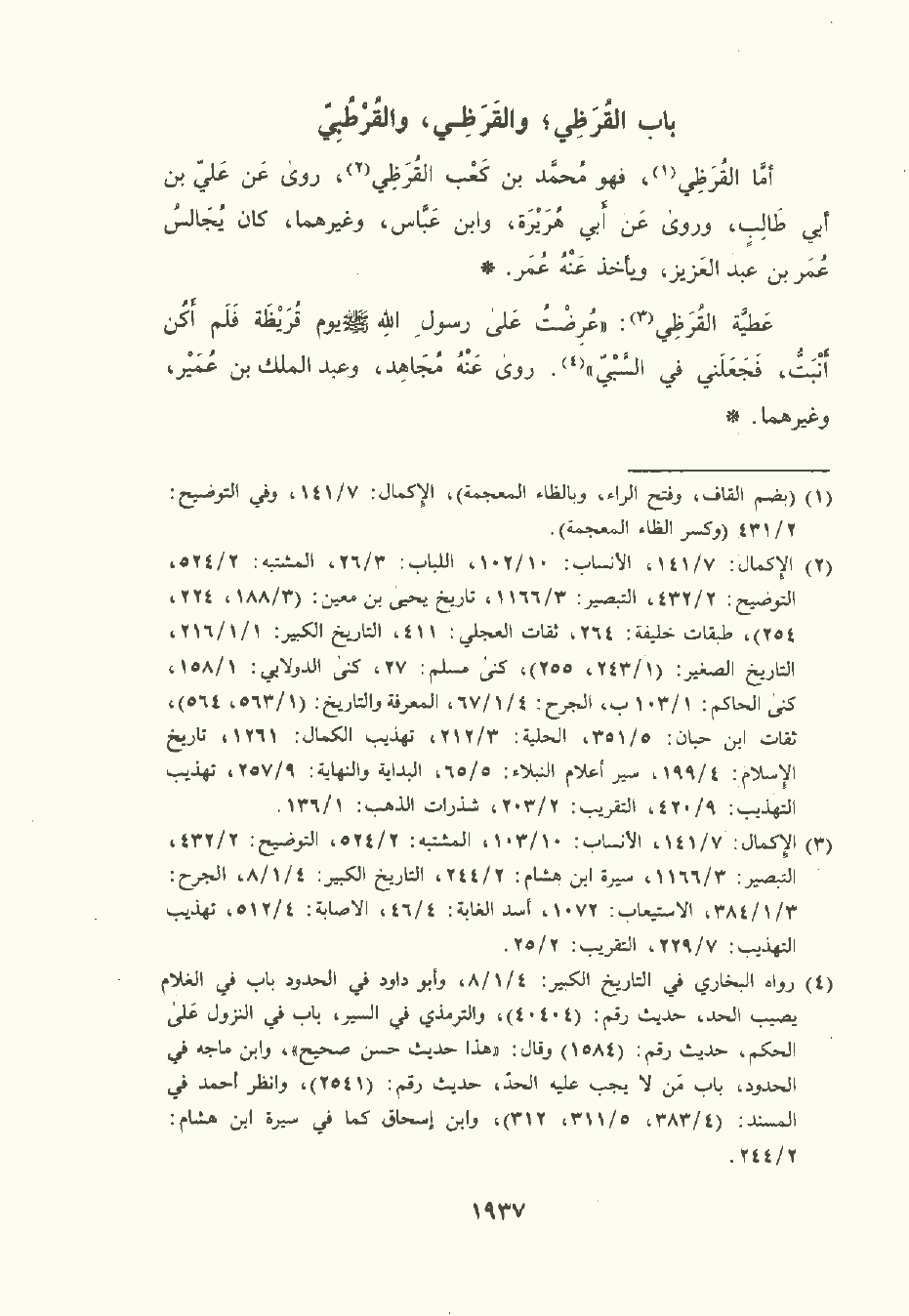 باب القُرَظِي , وَالْقَرَظِي , والقُرْطُبِيّ.
