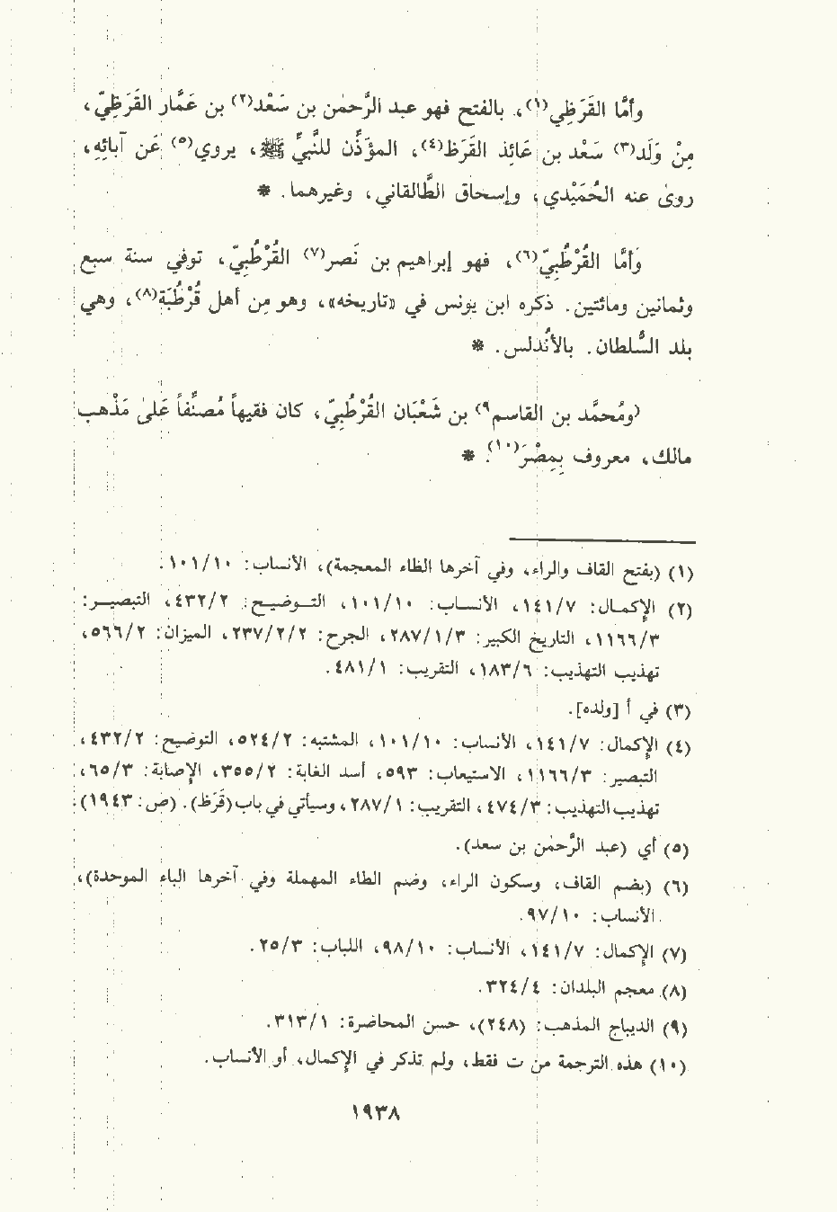 وأمَّا القُرْطُبِي , فهو إبْرَاهِيم بن نَصْر القرطبي , تُوفيّ سنة سبع وثمانين ومائتين , ذكره ابن يُونُس في تاريخه , وهو من أهل قرطية وهي بلد السلطان. بالأندلس.