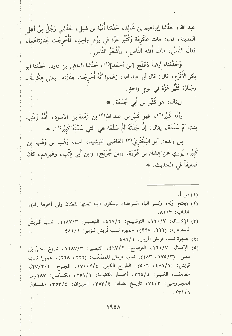 وحدثناه أيضًا دَعْلَج بن أحمد , حَدَّثَنا الخضر بن داود , حَدَّثَنا أبو بَكْر الأَثْرَم , قال: قال أبو عَبد الله: زعموا أنه أخرجت جنازته – يعني عِكْرِمَة – وجنازة كُثَيِّر عزة في يوم واحد.