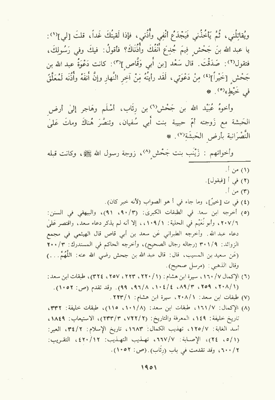 ثم يأخذني فيجدع أنفي وأذني فإذا لقيتك غدا قلت لي: يا عَبد الله بن جحش فيم جدع أنفك وأذناك؟ فأقول: فيك وفي رسولك فتقول: صدقت. قال سَعْد بن أبي وَقَّاص: كانت دعوة عَبد الله بن جحش خيرا من دعوتي , لقد رأيته من آخر النهار وإن أنفه وأذنه لمعلق في خيط.