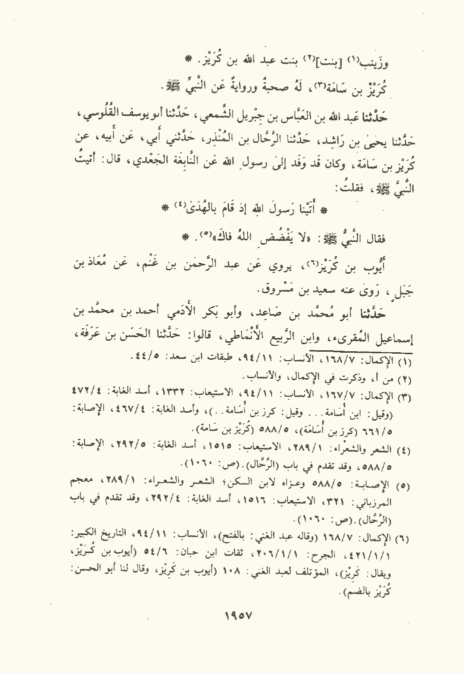 كُرَيْز بن سامة , له صُحْبة ورواية عن النَّبِيِّ صلى الله عليه وسلم.