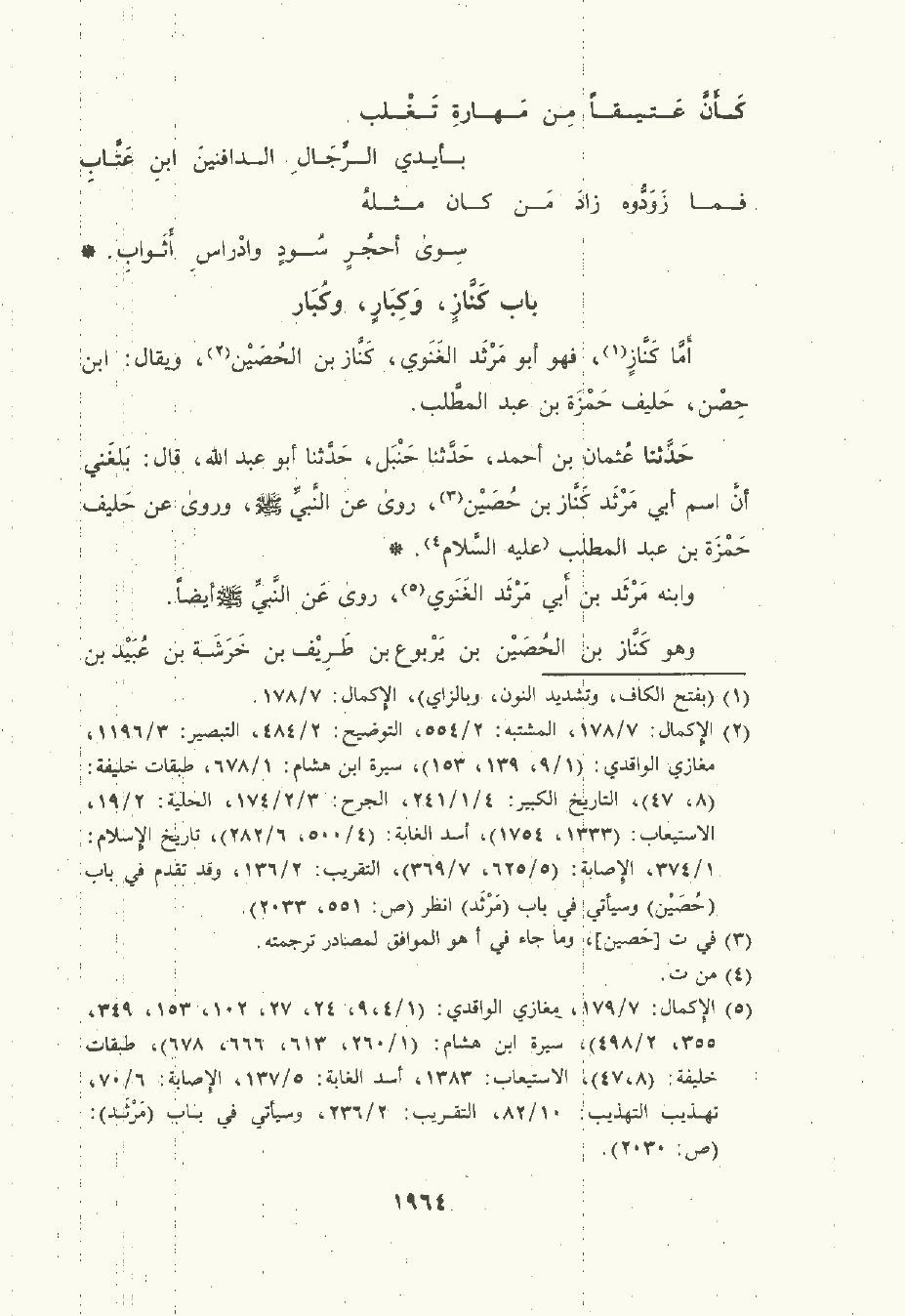 حَدَّثَنا عُثْمان بن أحمد , حَدَّثَنا حَنْبل , حَدَّثَنا أبو عَبد الله , قال: بلغني أن اسم أبي مرثد كَنَّاز بن حصين , رَوَى عن النَّبِيِّ صلى الله عليه وسلم , ورَوَى عن حُلَيْف حَمْزة بن عبد المطلب عليه السَّلام.