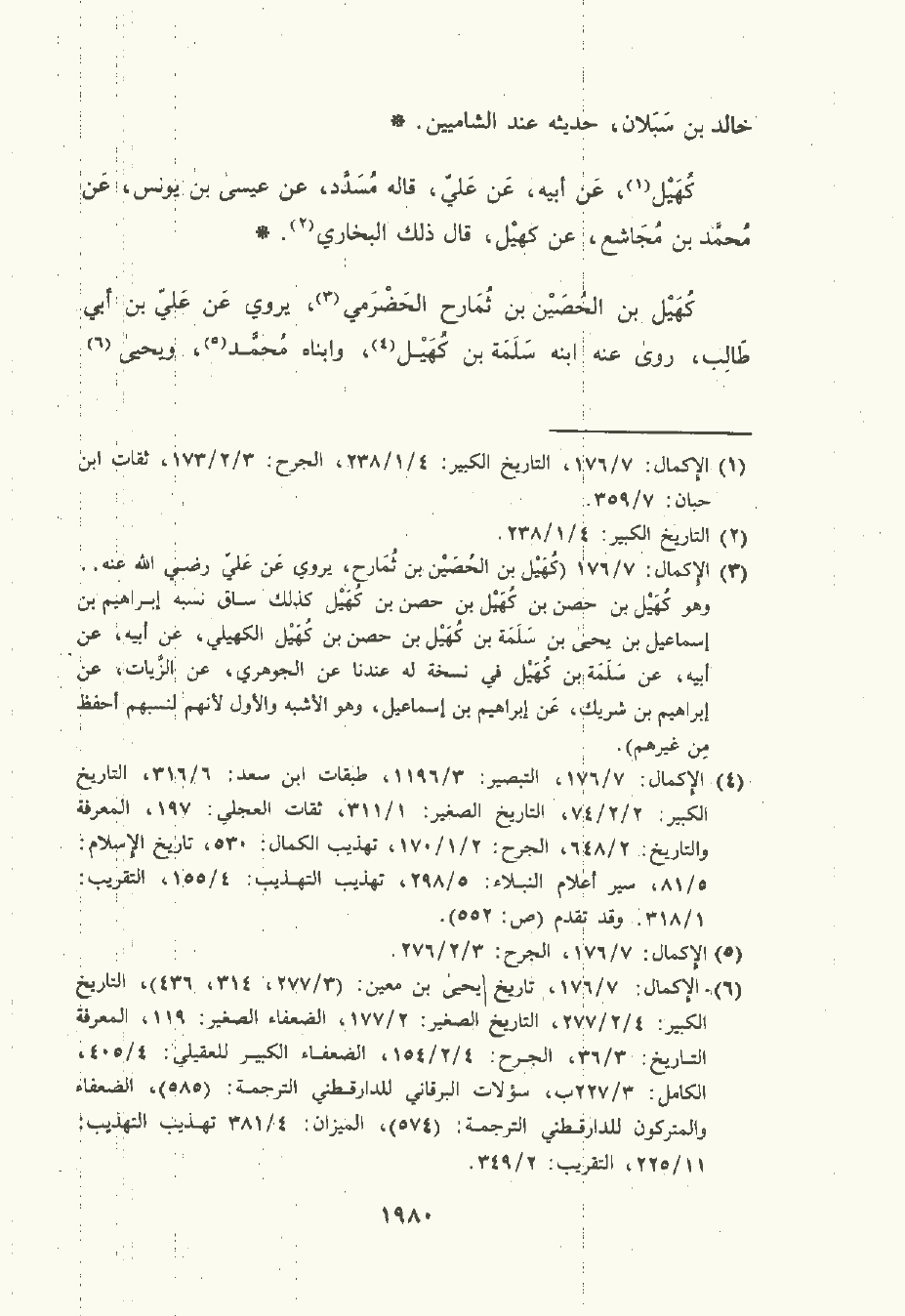 كُهَيْل بن الحُصَيْن بن ثمارح الحَضْرَمِيّ , يَرْوي عن عَلِيّ بن أبي طالب , رَوَى عَنْه ابنه سَلَمَة بن كُهَيْل وابناه مُحمَّد ويَحْيَى ابنا سَلَمَة , رويا عن أبيهما لهم حديث كثير.