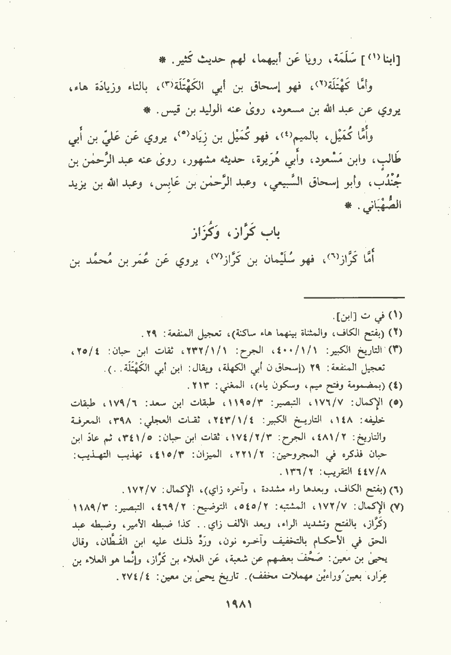 أمّا كَرَّاز , فهو سُلَيْمان بن كَرَّاز , يَرْوي عن عُمَر بن مُحمَّد بن صهبان , وغَيْرِه , رَوَى عَنْه هشام بن عَليّ السيرافي , وغَيْرِه.