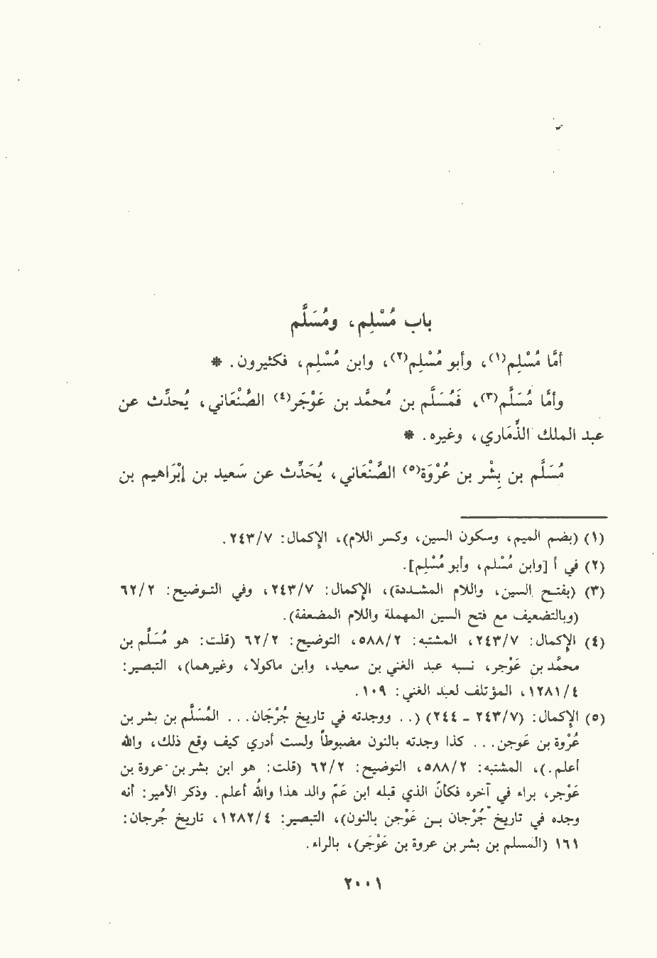 وأمَّا مُسَلَّم , فمُسَلَّم بن مُحمَّد بن عوجر الصَّنْعَانِيّ , يُحَدِّث عن عبد الملك الذماري , وغَيْرِه.