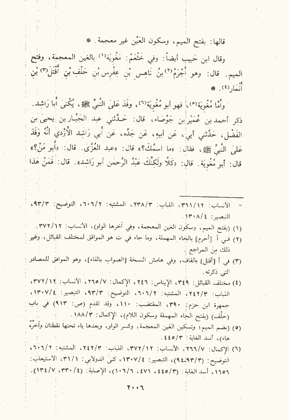 وقال ابن حَبِيب أيضًا: وفي خثعم: مَغْوِيَة , بالغين المعجمة وفتح الميم. قال: وهو أجرم بن ناهس بن عفرس بن حلف بن أفتل بن أنمار.