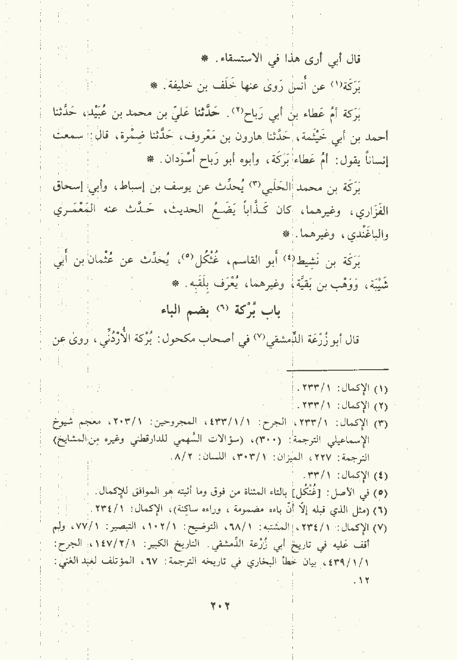 قال أبو زُرْعة الدِّمَشْقي في أصحاب مَكْحُول: بُرْكَة الأُرْدُنِي رَوَى عن مَكْحُول هو بضم الباء.