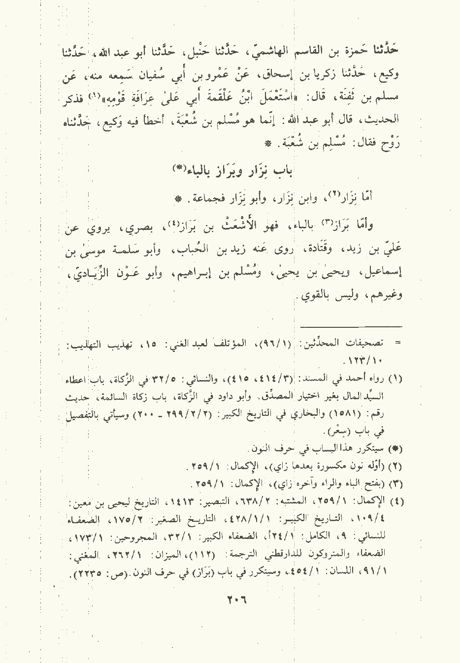 حَدَّثَنا حَمْزة بن القَاسِم الهَاشِميّ , حَدَّثَنا حَنْبل , حَدَّثَنا أبو عبد الله , حدثنا وَكِيع , حَدَّثَنا زكريا بن إسحاق , عن عَمْرو بن أبي سُفْيان سمعه منه , عن مُسلم بن ثَفِنَة قال: استعمل ابن عَلْقَمة أبي على عِرَافة قومه فذكر الحديث، قال أبو عبد الله: إنما هو مُسلم بن شُعْبة أخطأ فيه وَكِيع حدثناه روح فقال: مسلم بن شُعْبة.