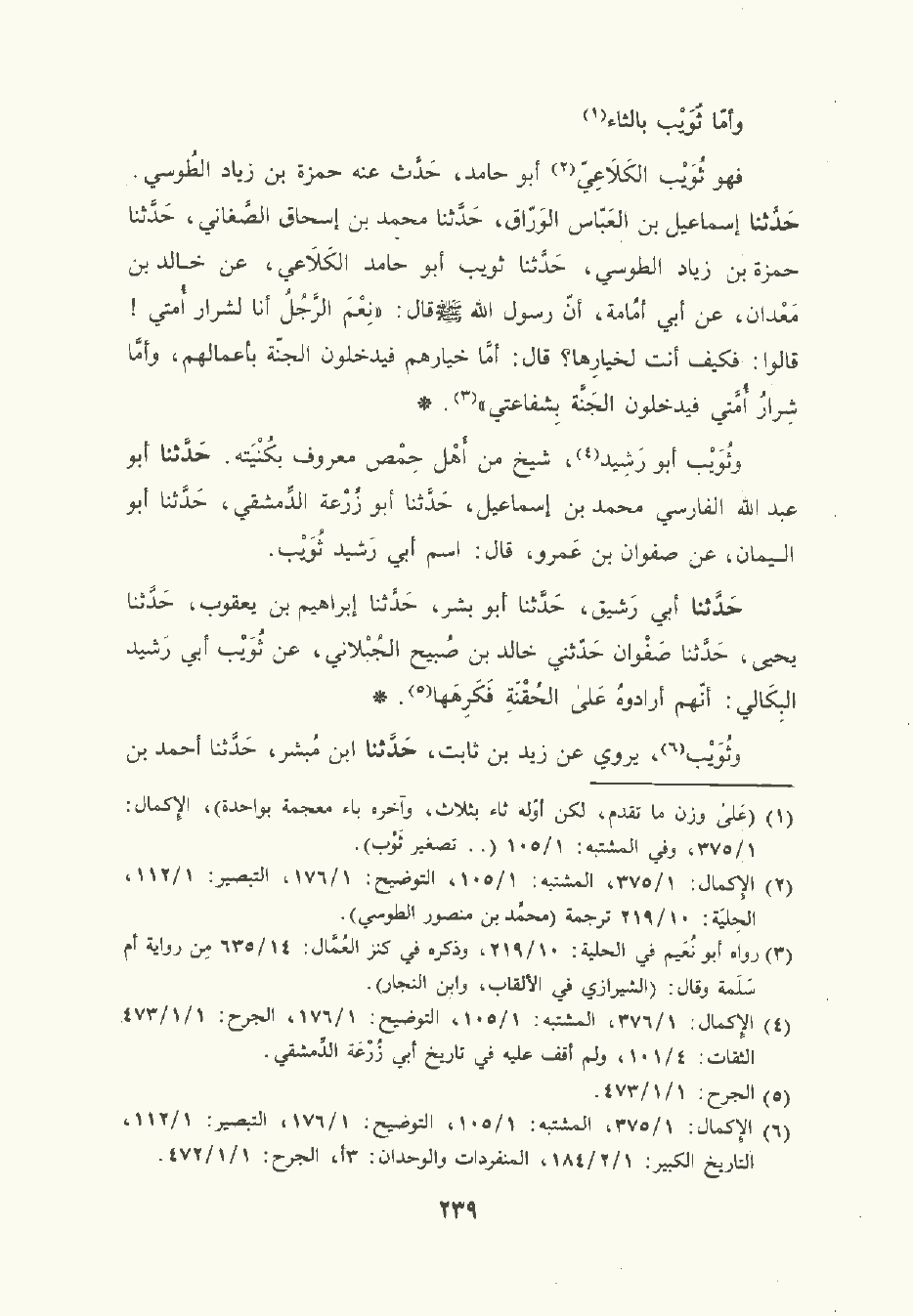 وثُوَيْب أبو رَشِيد شيخ من أهل حمص معروف بكنيته. حَدَّثَنا أبو عبد الله الفارسي مُحمَّد بن إسماعيل , حَدَّثَنا أبو زرعة الدِّمَشْقي , حَدَّثَنا أبو اليمان , عن صَفْوان بن عَمْرو قال: اسم أبي رشيد ثويب.