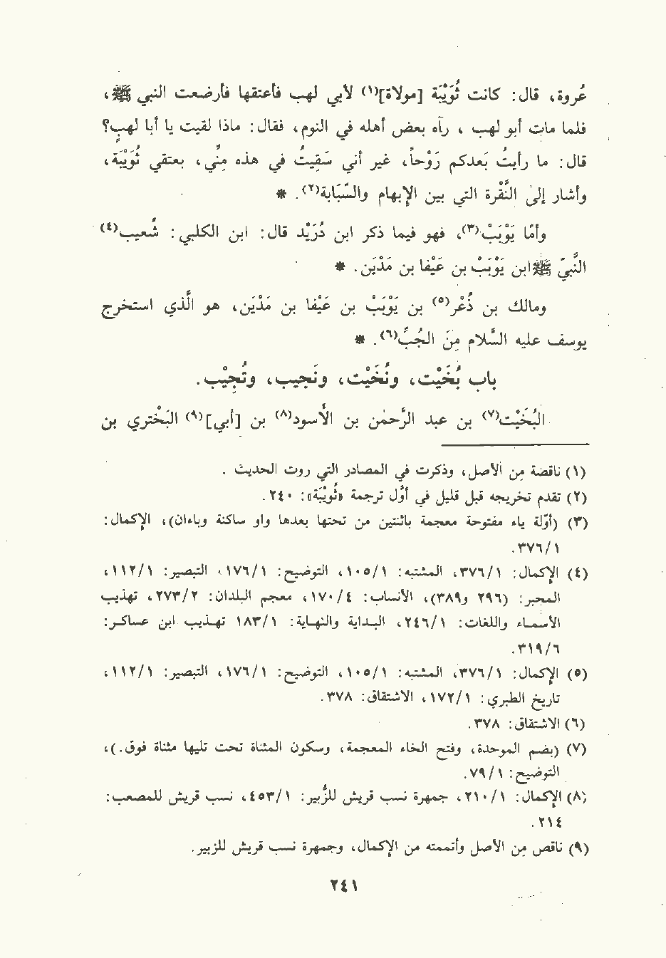 باب بُخَيْت , ونُخَيْت , ونَجِيب , وتُجَيْب.