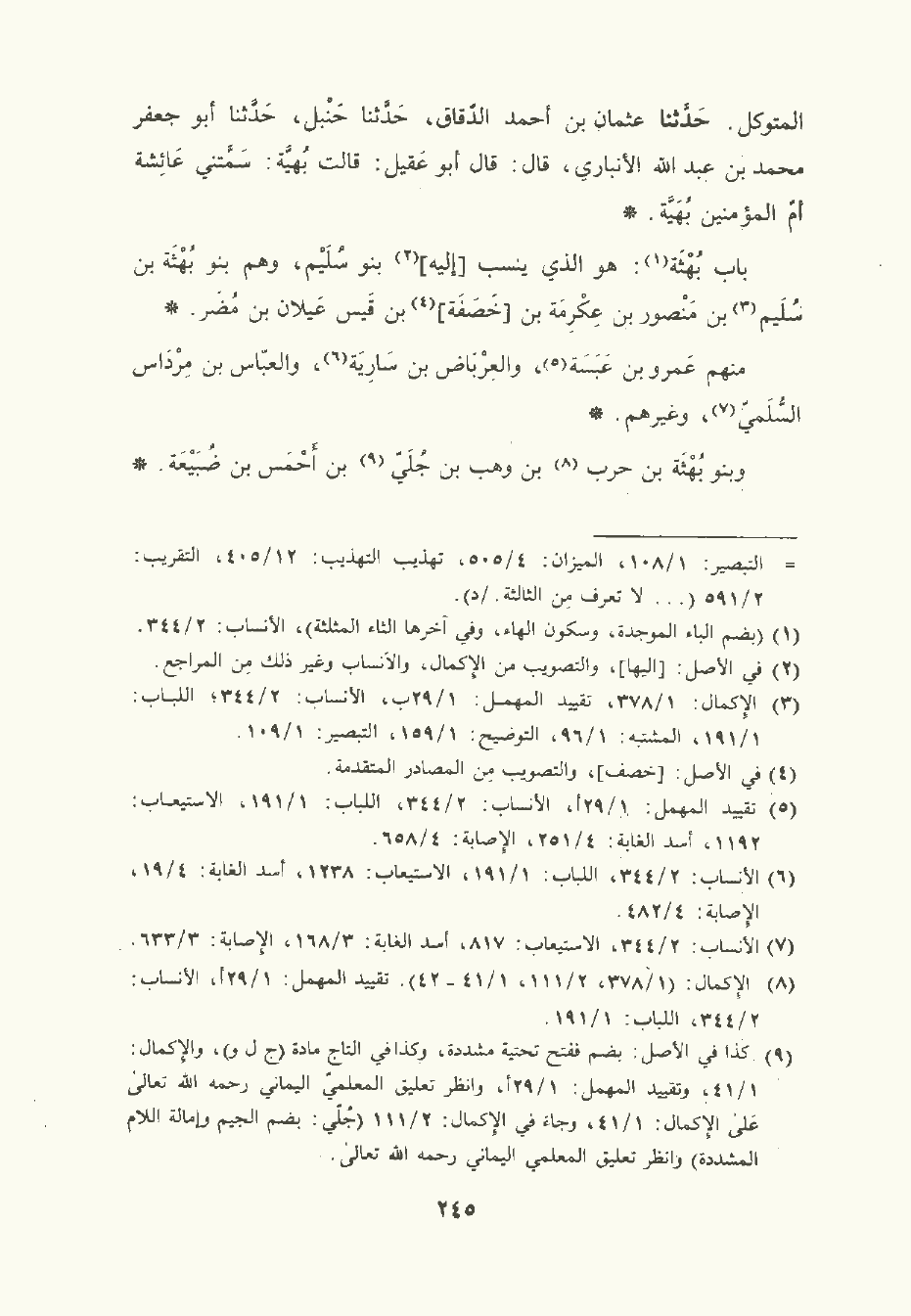 باب بُهْثَة: هو الَّذي ينسب إليه بنو سليم وهم بنو بُهْثَة بن سليم بن مَنْصُور بن عِكْرمة بن خَصَفَة بن قَيْس عَيْلان بن مضر.